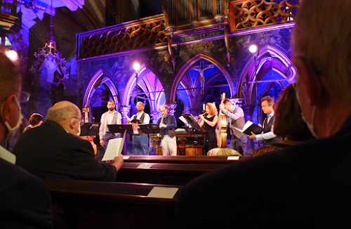 « Quoi de neuf, Docteur » ? Saint Pierre le Jeune, écrin subtil pour cette formation hors du commun, un après-midi d’automne, une ambiance se trace subtilement pour nous conduire sur les chemins d’un compositeur étonnant, hors du commun : diplomate, chanteur, menant une vie riche de rencontres et de responsabilités politiques, traversant une époque où l’art se mêle aux grandes décisions de l’état. Cap sur les grandes orientations de la boussole : nord, sud, est, ouest, en route pour un voyage dans le temps, judicieusement ponctué par des interventions, entremets récurrents, pédagogiques. On y apprend au fur et à mesure les enjeux artistiques des péripéties de la vie mouvementée de Johannes Ockeghem, homme orchestre de bien des « orientations » diplomatiques ! L’ensemble « Comet Musicke » s’attache tout particulièrement à une recherche esthétique sur le genre « concert-biographie », ponctué par des prises de paroles érudites et édifiantes sur la vie du personnage qui devient le moteur du concert. Un portrait musical et vocal d’une pointure de l’art polyphonique du XVème siécle ! Place donc au concert piloté par huit artistes, chanteurs, violistes, vièlistes, cornettiste, flûtiste : des histoires contées par Marie Favier, mezzo-soprano, avec malice, entrain, dans un jeu de conteuse comédienne qui se renforce tout au long du récital. Belle performance vocale et scénique, mimiques au point, toujours dans le jeu.